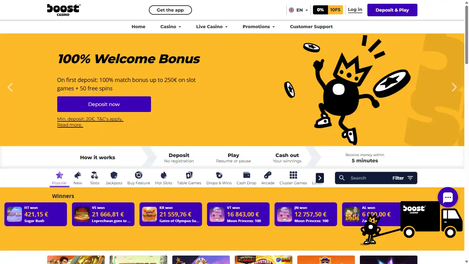Boost Casino opera com licença da Estônia e possui um Índice de Segurança muito alto (9.8), indicando um ambiente seguro e justo para jogadores.