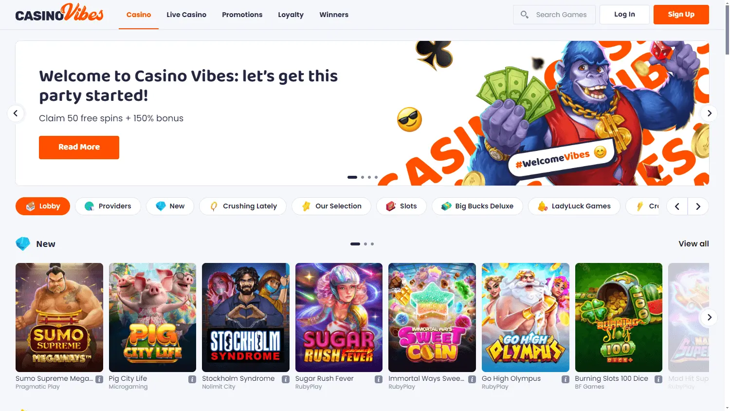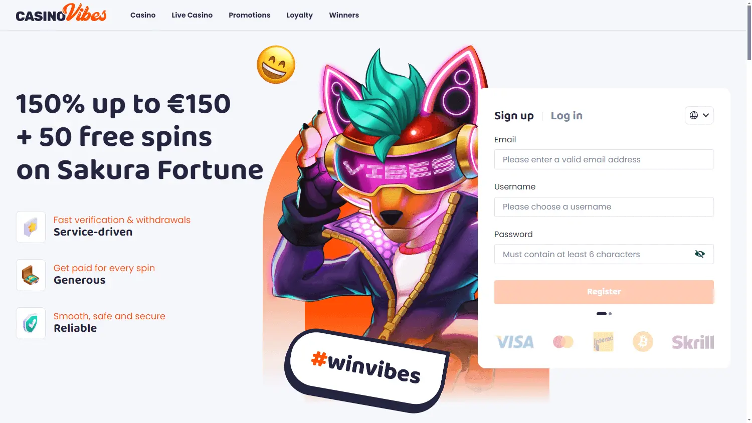 CasinoVibes opera com licença de Curaçao e oferece uma ampla variedade de jogos de cassino.