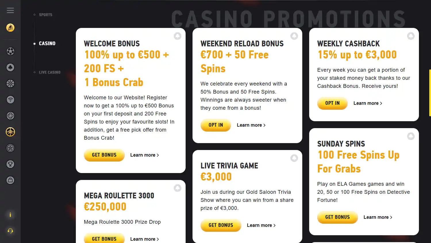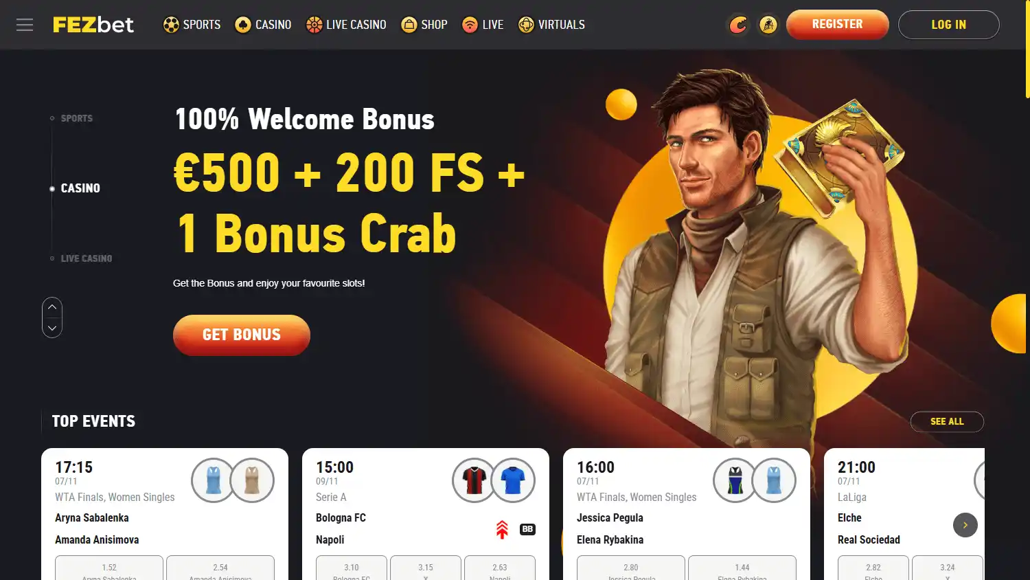— Bônus de depósito: 100% até €500 e 200 giros extras