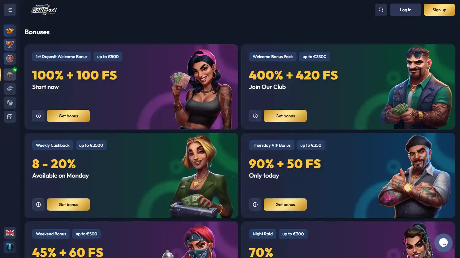 Gangsta Casino opera com licença de Curaçao e possui um Índice de Segurança Alto de 8.4, indicando confiabilidade.