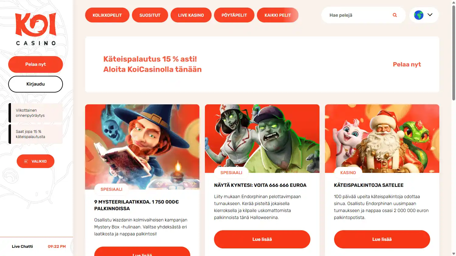 Koi Casino opera com licença de Curaçao e Estônia, sendo de porte médio com receitas acima de US$ 1 milhão.