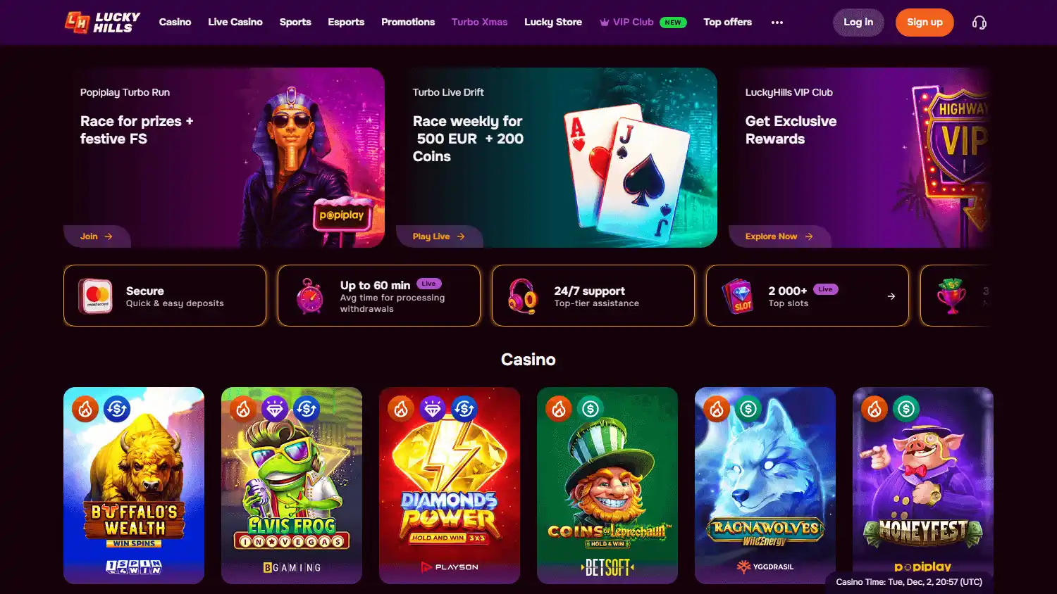 LuckyHills Casino opera com licença de Curaçao e oferece uma ampla variedade de jogos e métodos de pagamento.