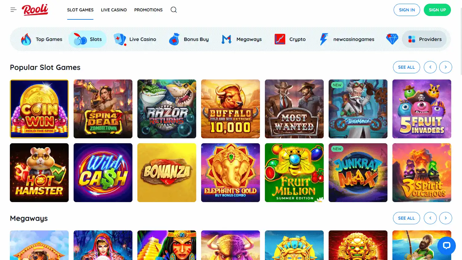 — Jogos como slots, roleta, blackjack e opções ao vivo