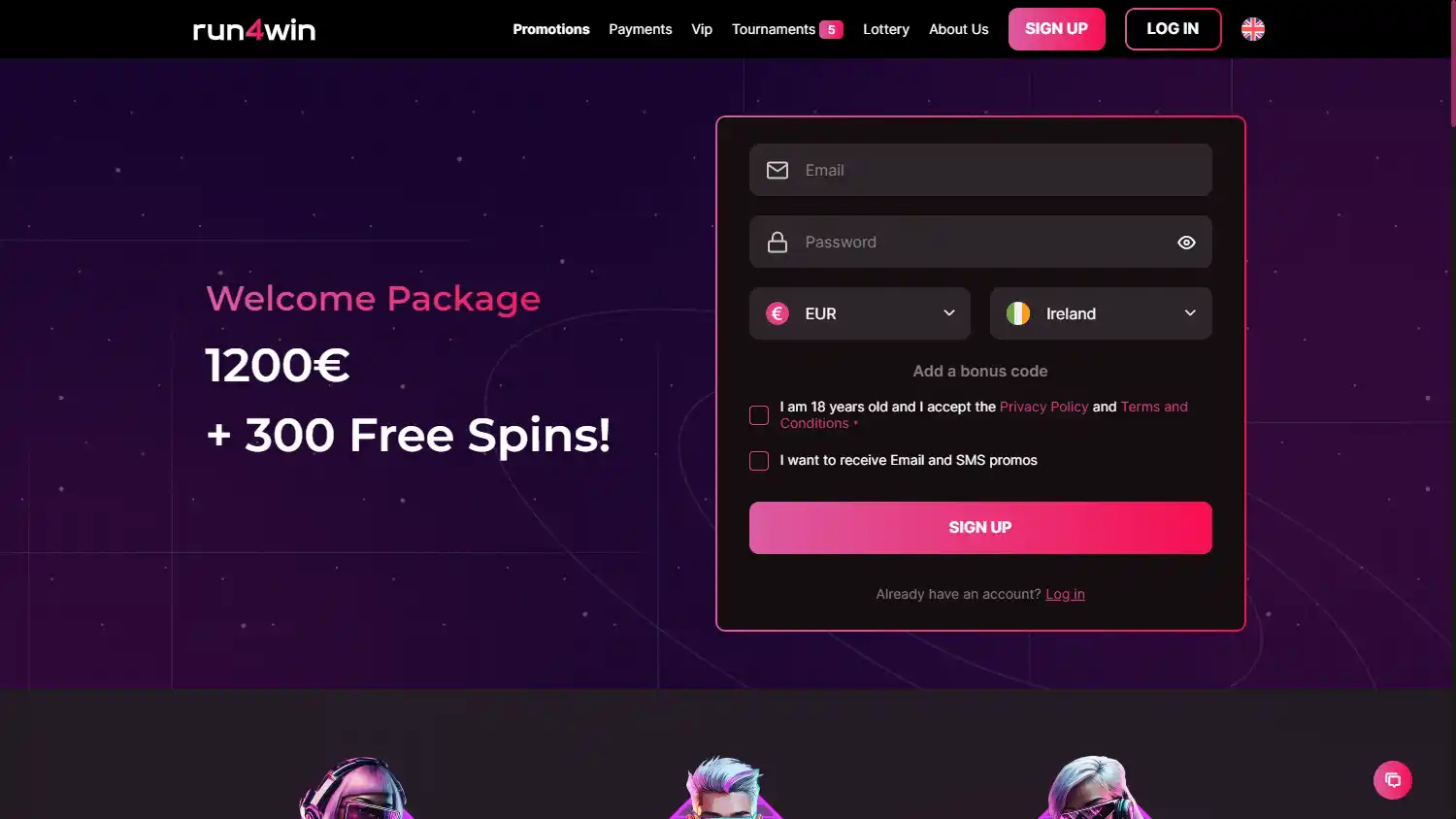 — Bônus de depósito: 100% até €300 e 100 giros extras