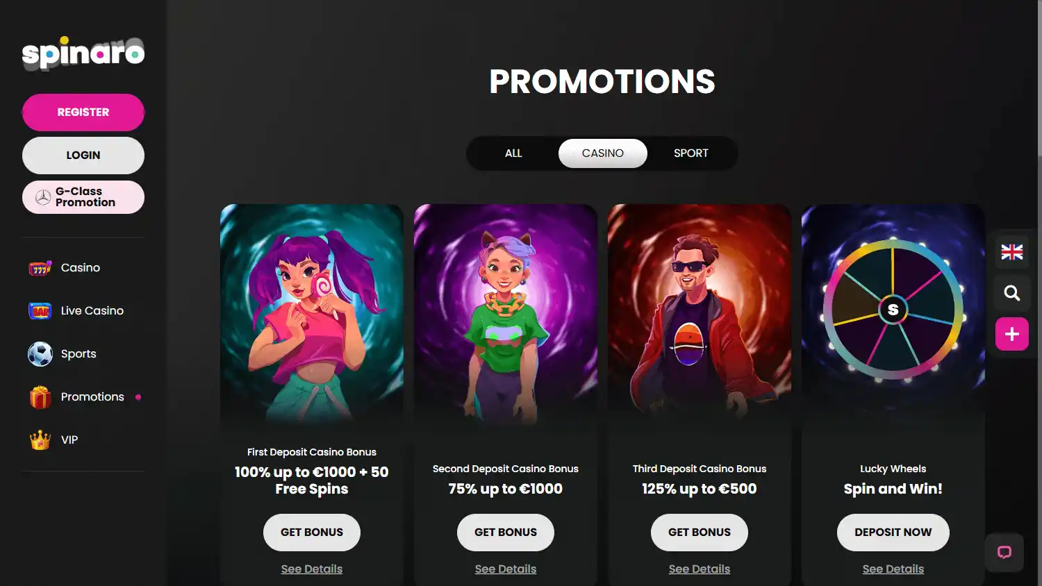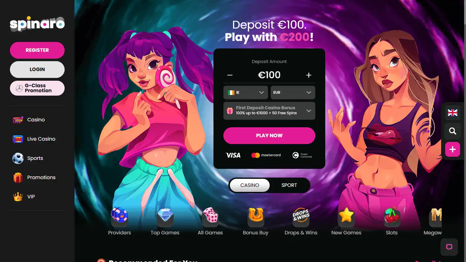 — Bônus de depósito: 100% até €1.000 e 50 giros extras