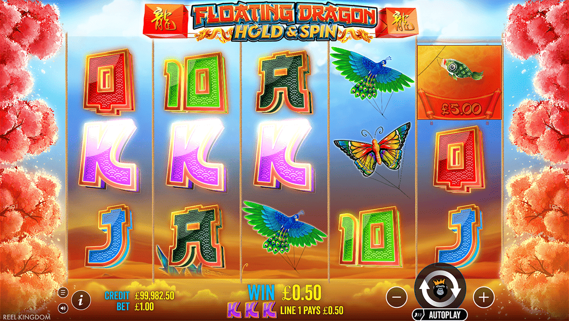 Floating Dragon представляет азиатскую тему в мирной, но полезной атмосфере. Символ дракона действует как дикий символ, а символы рыбы приносят денежные призы. Когда функция «Hold & Spin» активна, рыба остается зафиксированной на экране, увеличивая потенциальный выигрыш с каждым повторным вращением. Анимация драконов, шелковый фон и тихая музыка создают элегантный игровой процесс. Floating Dragon — это игровой автомат, в котором сходятся удача, элегантность и богатство.