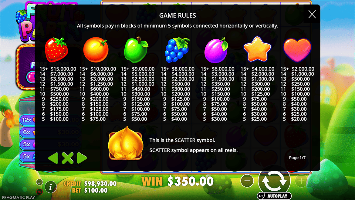 Fruit Party — это взрыв красок, позитива и сладкого азарта. Слот встречает тебя заливкой из сочных фруктов, блестящих выигрышей и радостной атмосферы, от которой хочется улыбаться. Здесь не нужно ничего усложнять — просто вращайте барабаны и наслаждайся каскадом побед, когда на экране вспыхивают апельсины, клубника и звёзды множителей. Игра наполнена лёгкостью и энергией, а каждый спин ощущается как праздник. Fruit Party — это чистое удовольствие, где удача приходит ярко, вкусно и совершенно неожиданно.