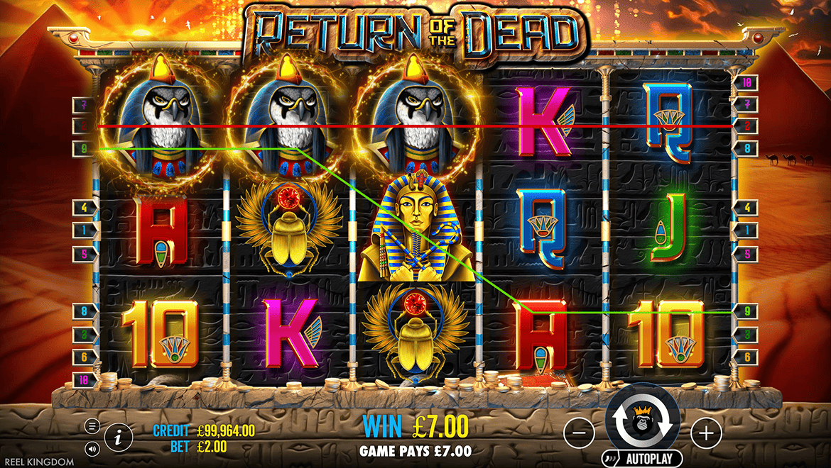 Return of the Dead – впечатляющий игровой автомат, в котором тайна Древнего Египта сочетается с современной графикой. Герой-археолог создает победы с помощью комбинаций символов фараона и магических книг. Во время раунда «Бесплатные вращения» случайно выбранный символ расширяется и занимает весь барабан. Сочетая в себе классическую механику книжного стиля с высокой волатильностью, игра дополняет атмосферу ветрами пустыни и мистической музыкой. Каждое вращение — это путешествие открытий, пропитанное историей.