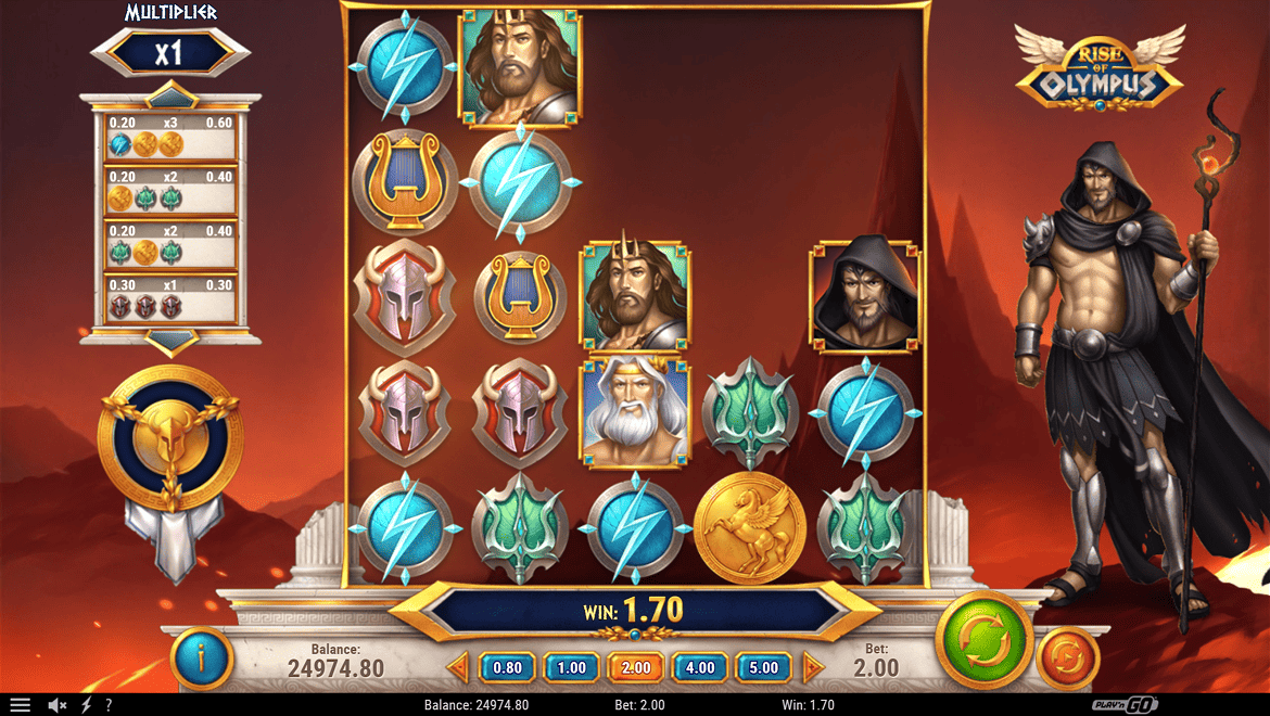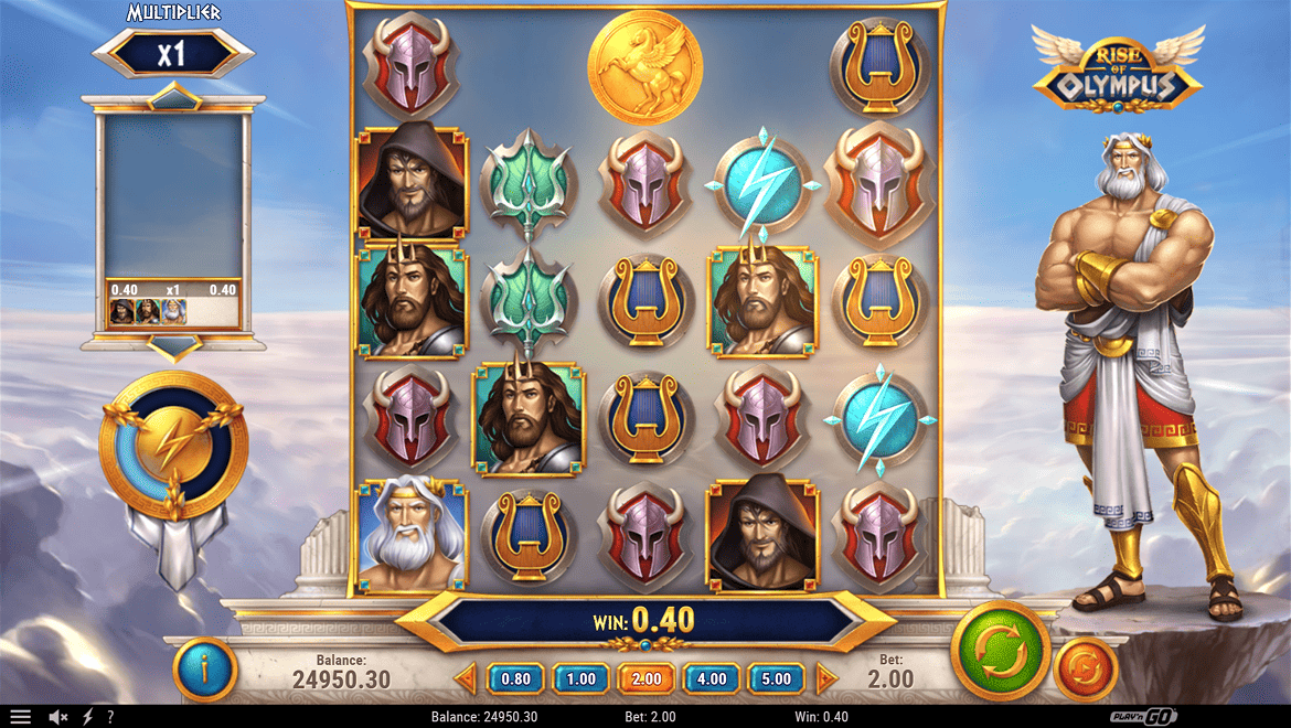 Rise of Olympus — эпический игровой автомат, позволяющий ощутить силу древнегреческих богов. Зевс, Аид и Посейдон предлагают разные функции при каждом вращении; они уничтожают символы, добавляют джокеры или умножают выигрыши. Функции «Рука Бога» и «Гнев Олимпа» запускают выигрышные цепочки. Благодаря легендарной музыке, впечатляющей графике и мощной бонусной системе Rise of Olympus открывает дверь к божественным богатствам. Каждое вращение превращается в легенду, возносящуюся к небесам.