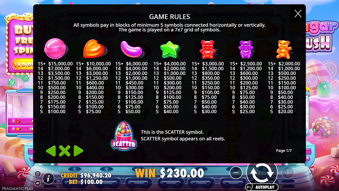 Sugar Rush — это слот, где сладости правят балом. Всё вокруг сияет карамелью, мармеладом и сахарными кристаллами, а каждый спин похож на погружение в яркий, сладкий мир детской мечты. Символы взрываются каскадами, множители растут, и выигрыш набирает обороты, словно лавина конфет. Атмосфера лёгкая и радостная — музыка, цвета и плавная анимация создают ощущение настоящего сахарного безумия. Sugar Rush — это игра, где азарт растворен в сладости, а каждая комбинация приносит порцию удовольствия и немного счастья.