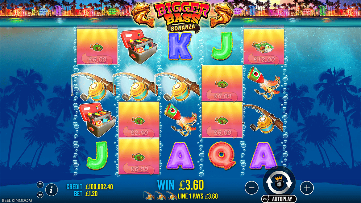 Bigger Bass Bonanza is a more lucrative version of the popular fishing theme. The fisherman character acts as a wild, collecting prizes with every fish symbol he catches. During free spins, when the fisherman reappears, multipliers increase up to 10x. With ocean-themed sound effects and a neon harbor design, the game offers an atmospheric experience. Bigger Bass Bonanza is an excellent choice for those seeking a slot that is both fun and high-potential.