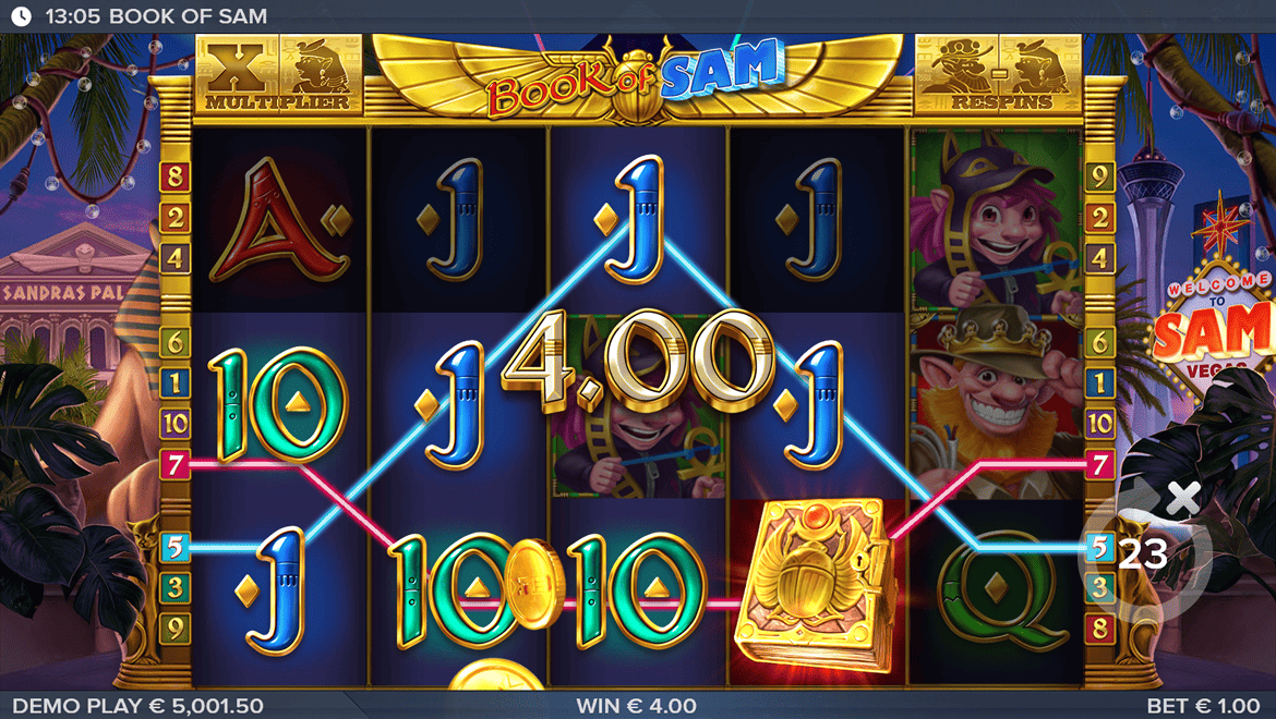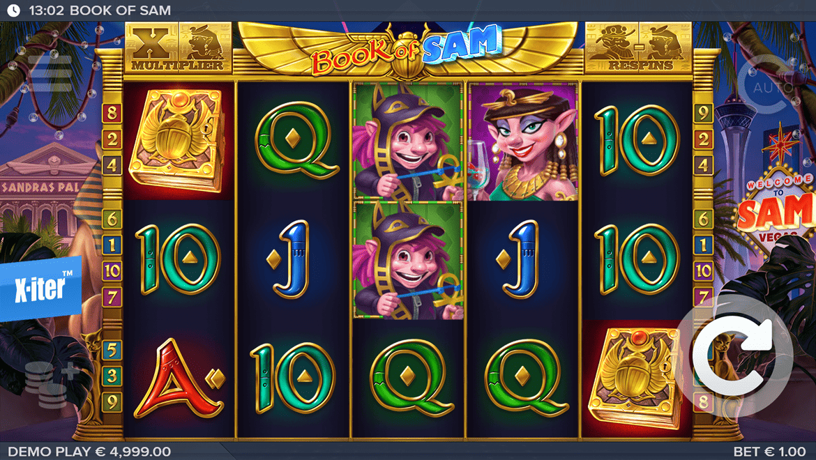 Book of Sam adds a unique sense of humor and energy to the classic Egyptian theme. The electric fish Sam dances on reels filled with pharaoh masks and glowing symbols. The book symbol acts as both a scatter and a wild, and during free spins, a randomly selected symbol expands to deliver huge wins. With its colorful light effects, electronic music, and comical animations, Book of Sam offers a fun “Book” style experience.