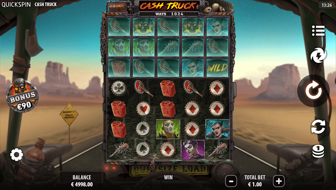 Cash Truck is a dynamic slot game that combines action and high-potential winnings. In the “Truck Raider Bonus” mode, players collect cash symbols, and each new symbol renews the spin right. Special symbols (Collector, Booster, Grabber) increase multipliers and deliver massive wins. With its post-apocalyptic atmosphere, metallic sound effects, and dynamic animations, Cash Truck delivers a true adrenaline rush.