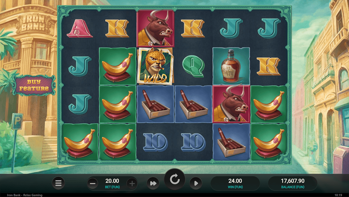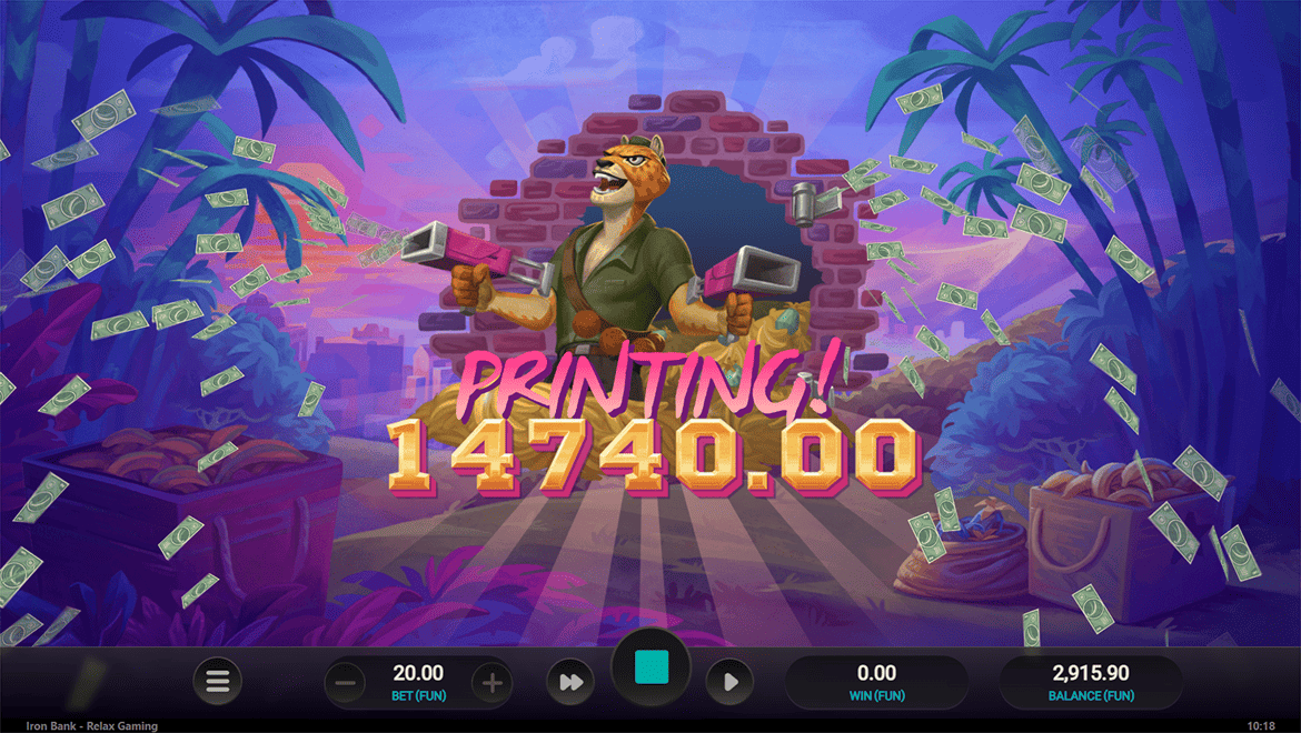 Iron Bank is an action-packed slot game set in the vibrant atmosphere of Havana. Players can choose from three different “Free Spins” modes: expanding wilds, multiplier symbols, or fixed wilds. With the “Mystery Symbol” feature, symbols randomly transform, creating surprise wins. With cheerful Latin music, tropical colors, and humorous characters, the game has a unique charm. Iron Bank is an adrenaline-fueled heist experience packed with strategic options.