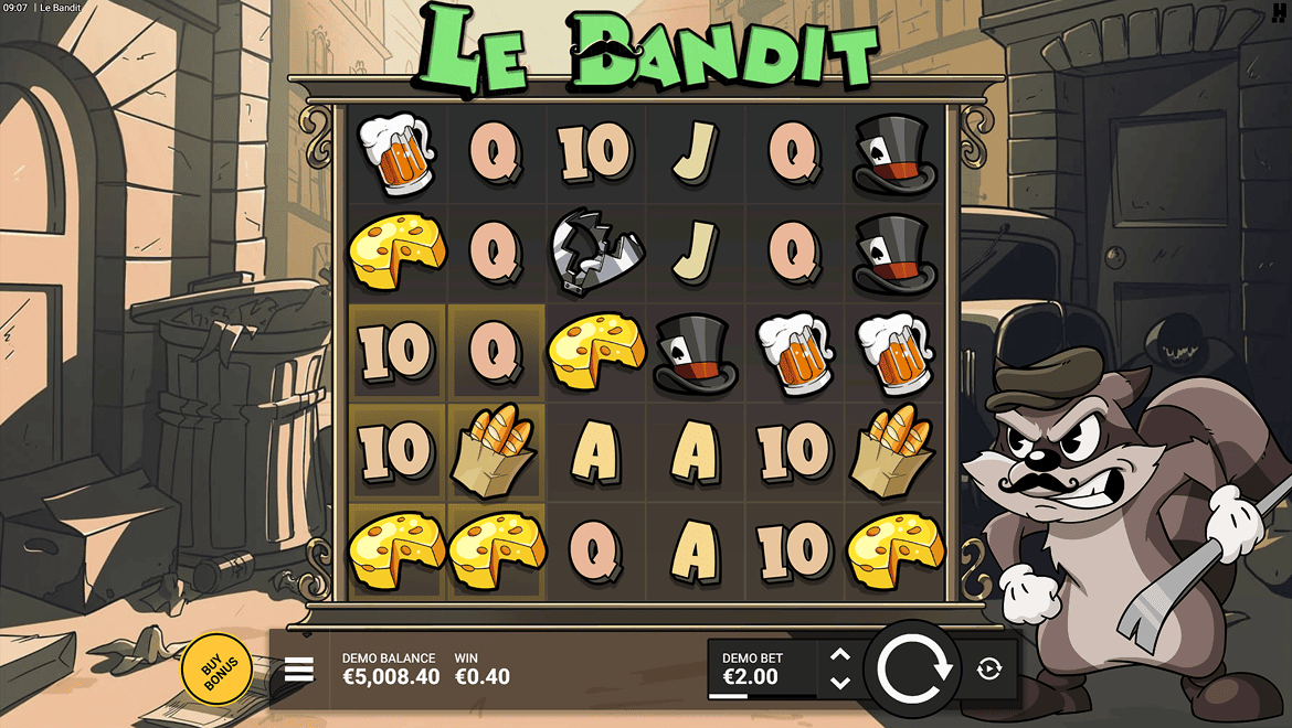 Le Bandit is an action-packed slot game set in the French underworld. In this adventure set on the streets of Paris, gangster symbols and “Heist” bonus rounds offer big wins. When Coin, Cash, and Wild symbols combine, massive prizes explode. The dark neon graphics and French jazz rhythms perfectly capture the atmosphere. Le Bandit is a heist story that blends elegance with chaos, packed with rewards.