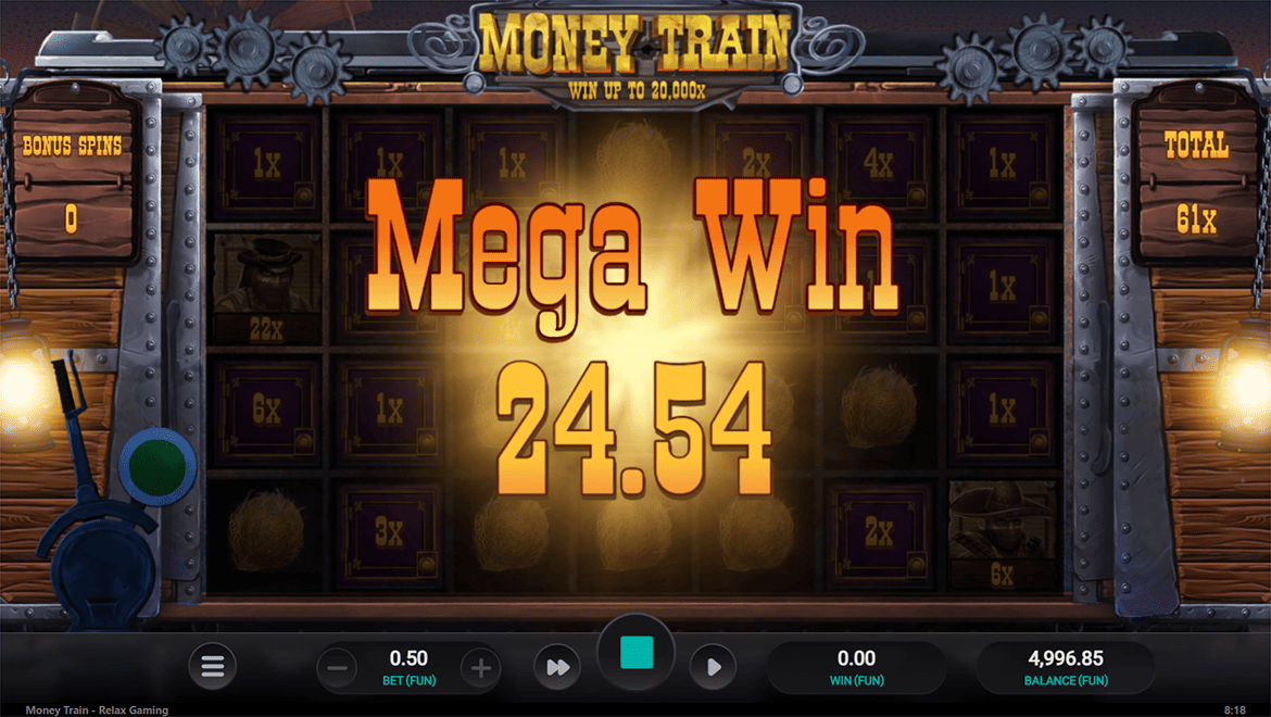 Money Train is the first game in an unforgettable Western-themed slot series. Special characters appear in the “Money Cart Bonus” feature: Collector, Payer, and Persistent symbols increase winnings. With each new symbol, spins are renewed and multipliers grow. The train tracks in the background, dusty towns, and exciting music give the game a real movie atmosphere. Money Train combines a classic heist story with big rewards.