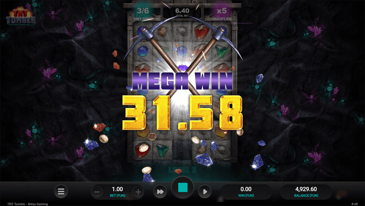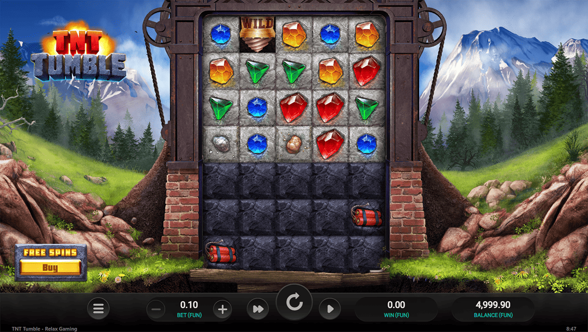 TNT Tumble is an exciting mining-themed slot game that combines action and strategy. Blocks break with every win, revealing new symbols and bonus tiles as you descend deeper. When “TNT Blocks” explode, wilds and multipliers come into play. During free spins, you can choose from three different game modes: high-risk, balanced, or low-risk. With powerful sound effects, detailed animations, and a satisfying gameplay loop, TNT Tumble offers an experience where digging yields riches.