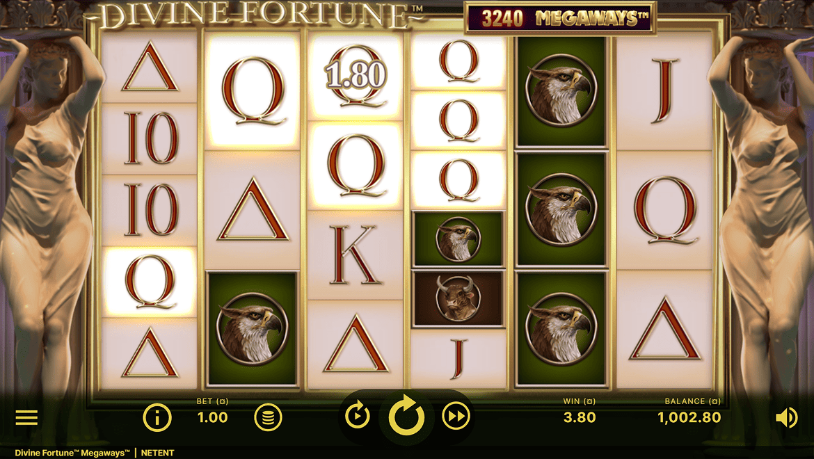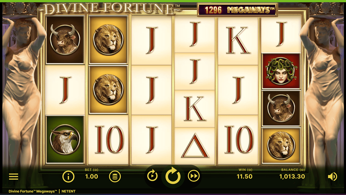 Divine Fortune, antik Yunan mitolojisini zarafetle birleştiren bir slot oyunudur. Pegasus, Medusa ve Minotaur sembolleriyle dolu makaralar efsanevi kazançlar sunuyor. Jackpot özelliği ilahi ödüller kazanma şansınızı artırır. Genişleyen wild'lar, ücretsiz döndürmeler sırasında daha fazla kazanma fırsatı yaratır. Klasik müzik, mermer sütunlu tasarım ve atmosferik efektler Divine Fortune'u mitoloji severler için sürükleyici bir deneyim haline getiriyor.