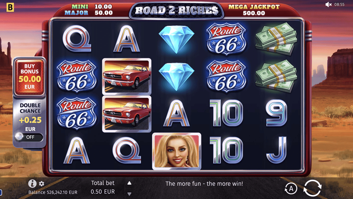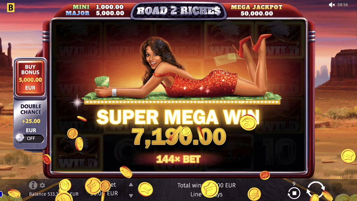Road2Rich, hızın heyecanını büyük kazanç potansiyeliyle birleştiren aksiyon dolu bir slot oyunudur. Parıldayan arabalar, neon tabelalar ve yakıt sembolleriyle her dönüş bir yarış hissi yaratır. "Nitro Bonus" özelliği, çarpanların katlanarak arttığı bedava dönüşleri tetikler. Geceleri şehir ışıklarının fonu ve kükreyen motor sesleri atmosferi tamamlıyor. Road2Rich, heyecan ve ödüller arayan oyunculara ödüllerle dolu, adrenalin dolu bir sürüş deneyimi sunuyor.
