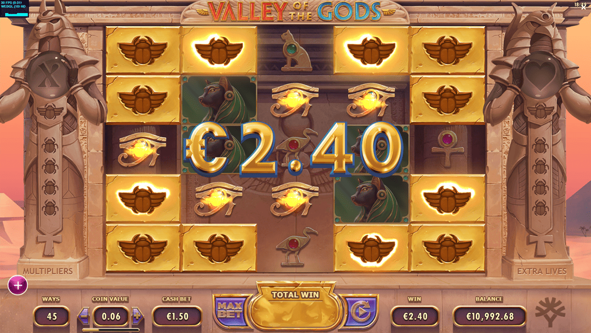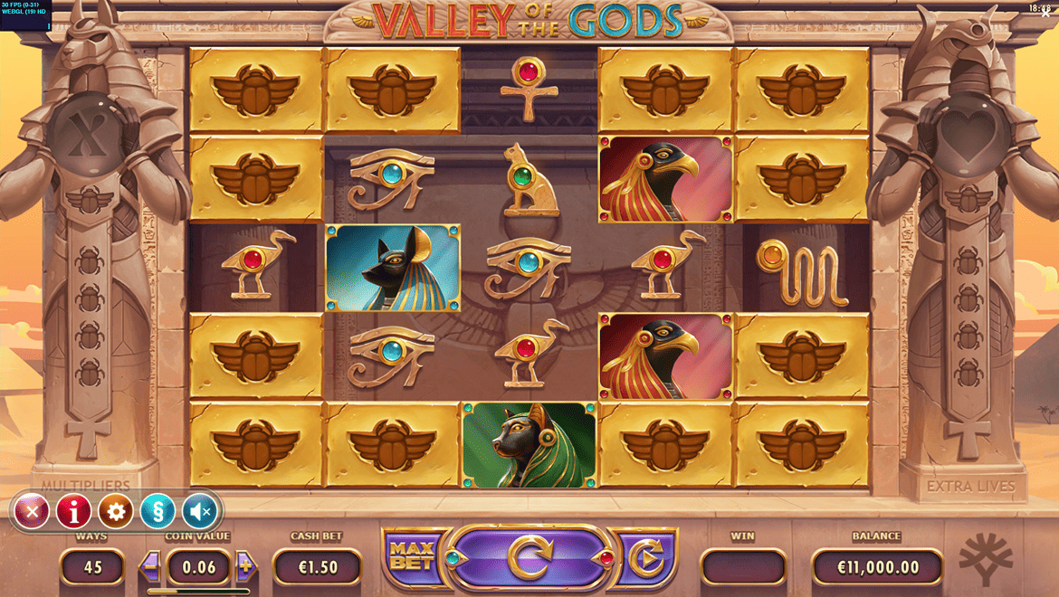Valley of the Gods, Mısır mitolojisini modern bir slot deneyimiyle birleştirir. Semboller, Anubis ve Horus'un koruduğu tapınaklarda kazançları artırır ve her kazanç yeni yollar açar. Bloklar kırıldıkça, yeniden döndürmeler tetiklenir ve wild sembolleri çoğalır. Her döndürmede, çarpanlar tanrıların gücüyle büyür. Parlak altın tonları, büyüleyici müziği ve heyecan verici atmosferi ile Valley of the Gods, hem görsel olarak hem de kazançlar açısından eşsiz bir macera sunar.